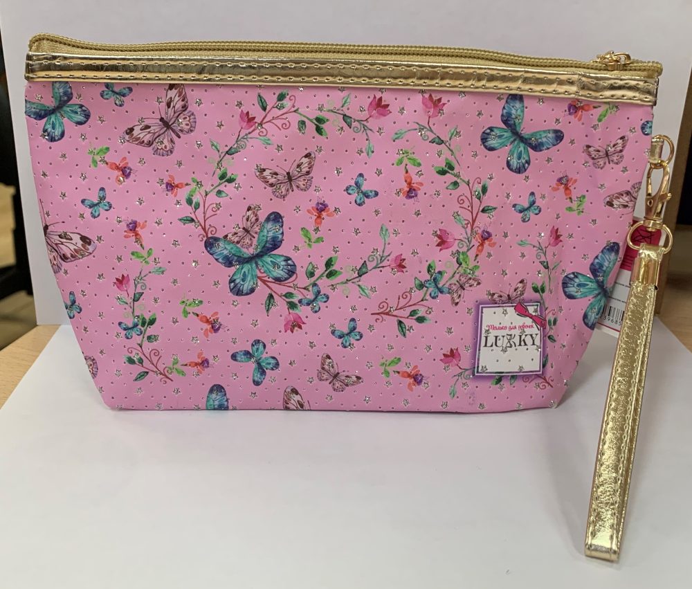Lukky косметичка розовая с принтом Lukky и блёстками,24х7см,пакет,бирка