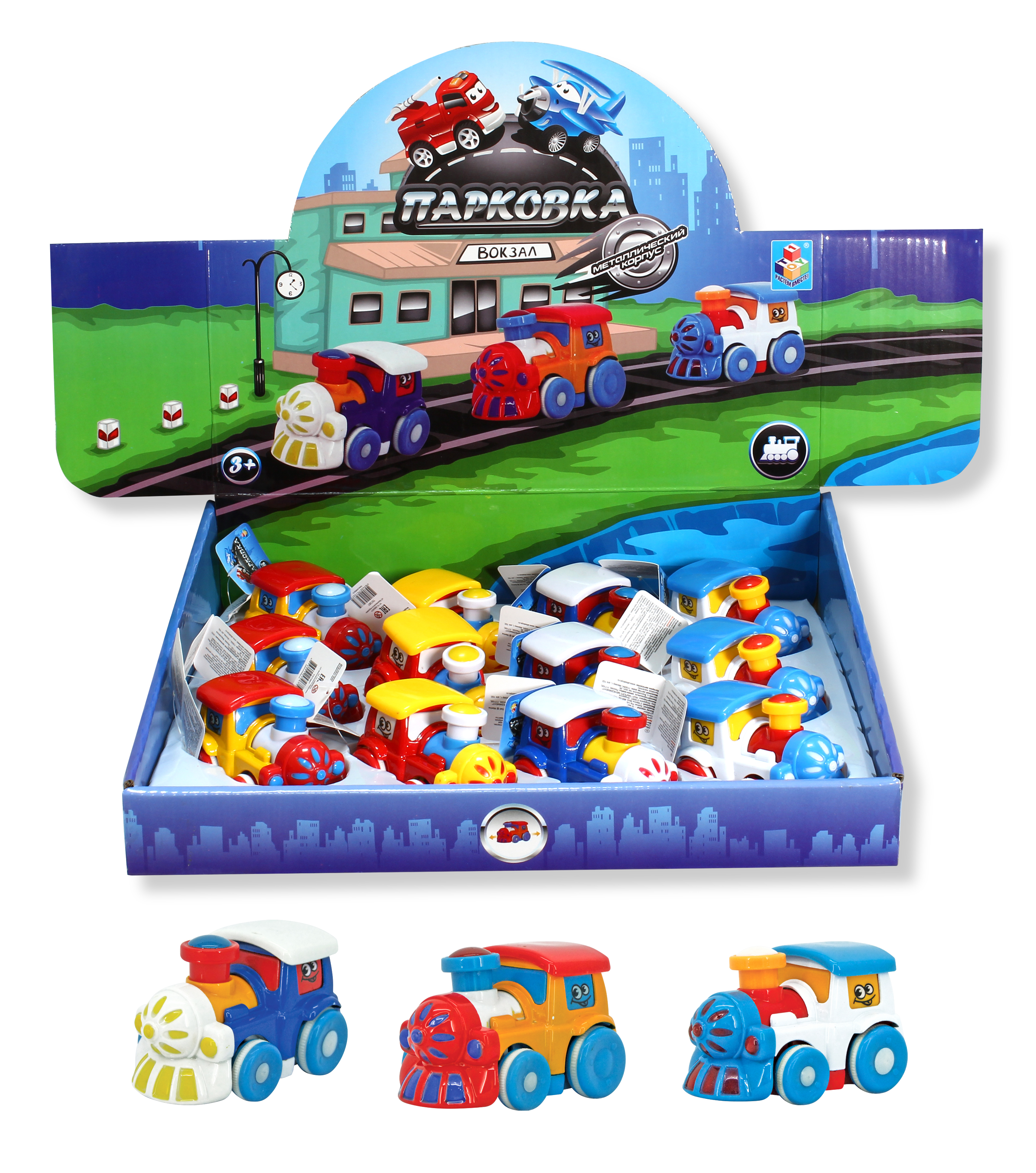 1toy парковка поезда, фрикц.поезд, 8см, металл. корпус, 4в в ассорт., д/б