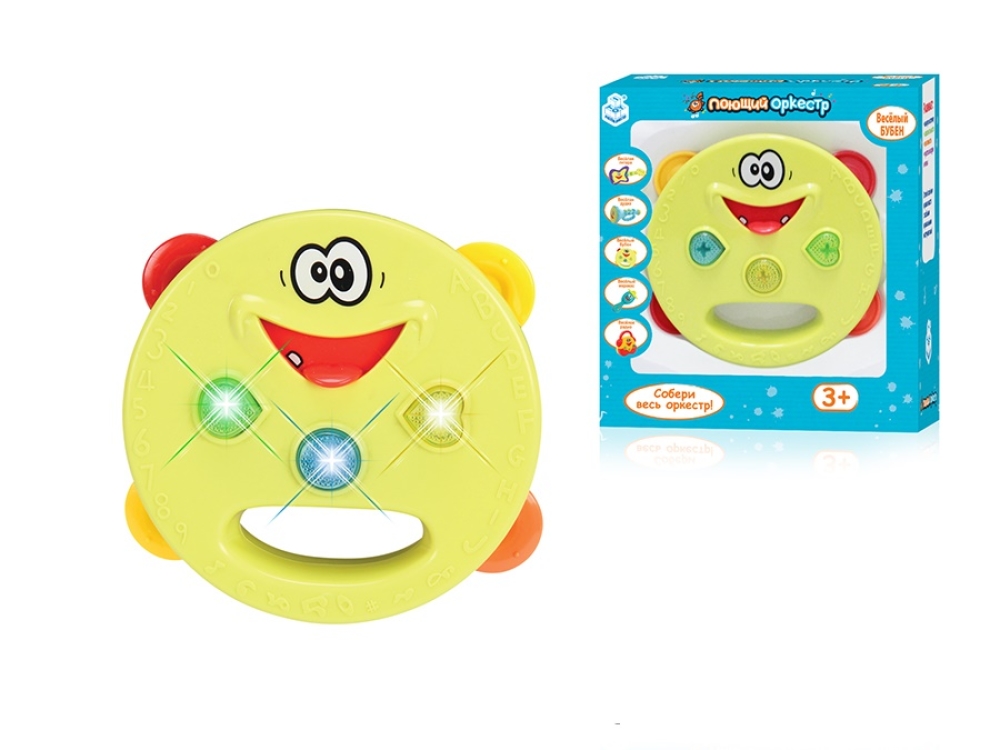 1toy поющий оркестр игр.эл.муз.бубен,свет,18х17х5см,кор.. Бренд: 1TOY Поющий оркестр Описание: Весёлый бубен с глазками, на котором можно не только играть, но и послушать, как он поет. Нужно лишь нажать на язычок, торчащий из ротика, и ты услышишь забавные трели. На игрушке расположены 3 кнопки с подсветкой, нажимая на которые, можно поиграть самому, и при этом будут загораться цветные лампочки. В бубен можно также поиграть, как в обычный - встряхни его, и он будет греметь. Бубен также развивает мелкую моторику, креативность, любознательность, чувство мелодии и ритма. Открой свой мир музыки вместе с весёлыми музыкальными инструментами серии Поющий Оркестр! Батарейки не входят в комплект. Вес: 0,243 Ширина: 18 Длина: 19,5 Высота: 8