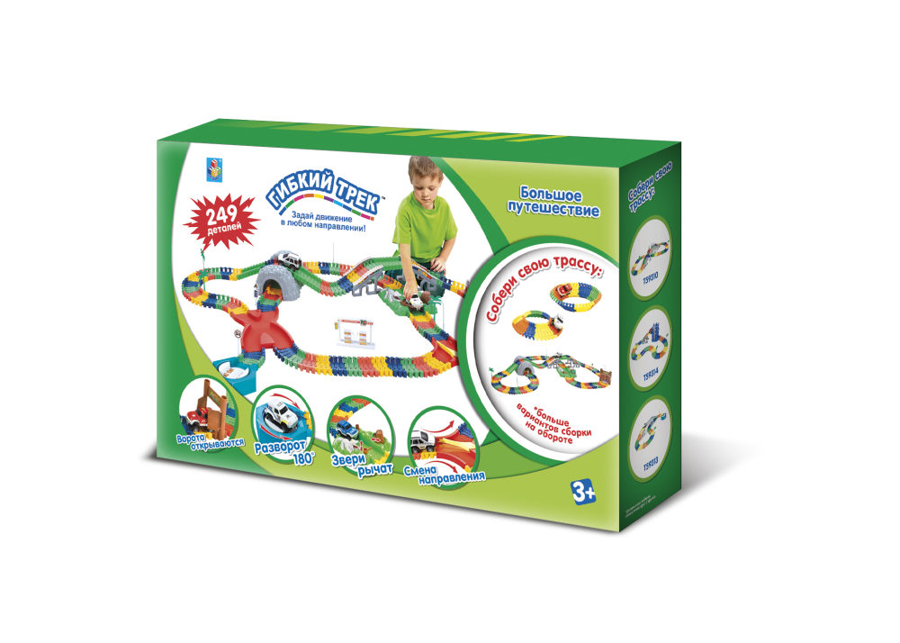 1toy гибкий трек большое пут-е 249 дет, разворот, пещера, перекресток, 2 м