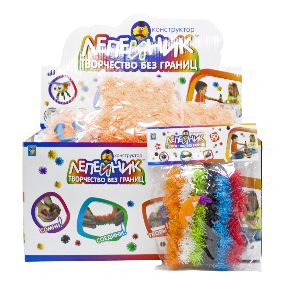 1toy лепейник констр. 48 разноцв.дет.с 2 аксесс.в пакете,24 пак.в д-боксе