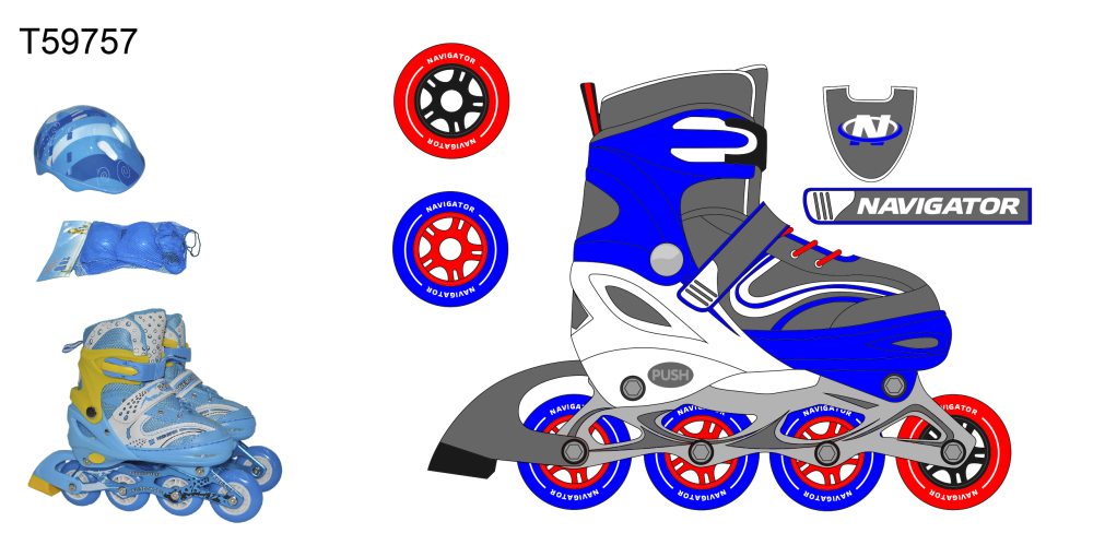 Коньки ролик, кол пвх,в комплекте с защитой и шлемом, перед.кол.со светом