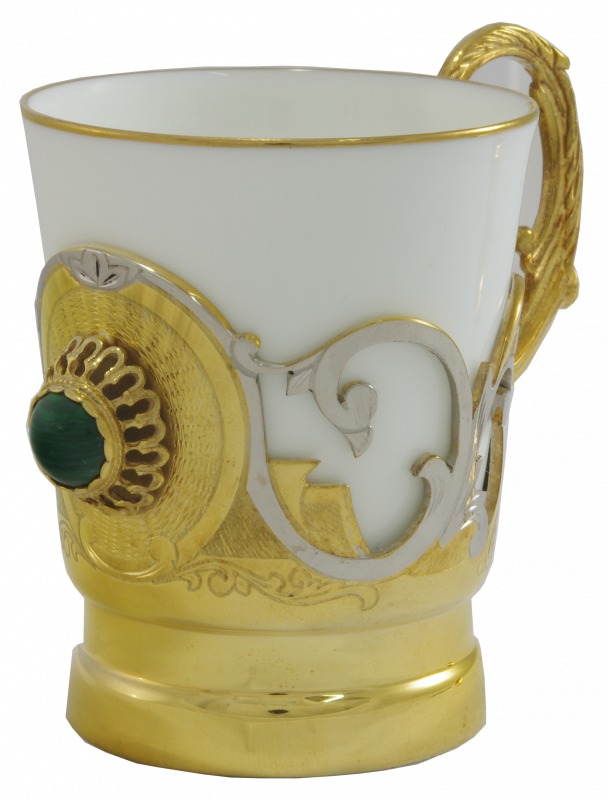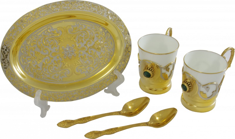 Набор кофейный ( тарель, 2 чашечки с подстаканником, 2 ложки) златоуст