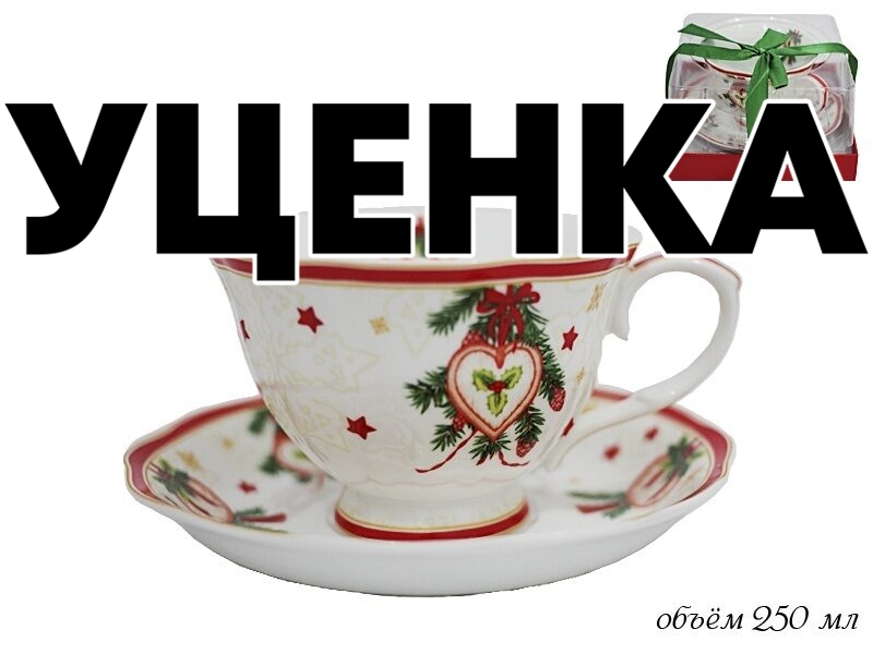 Уценка 1 шт из набор чашка с блюдцем 250 мл новый год в подарочной упаковке фарфор Lenardi