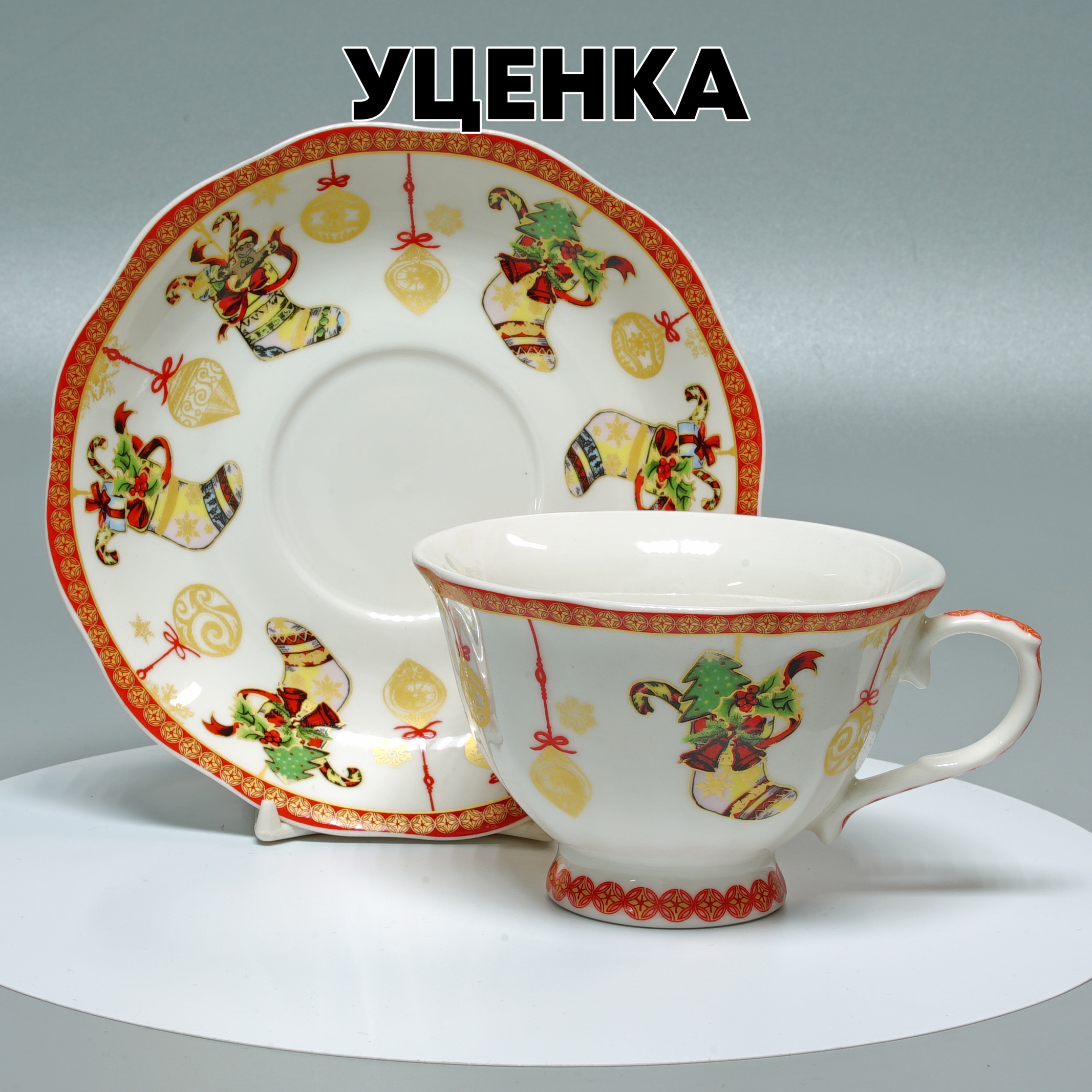 Уценка 1 шт из набор чашка с блюдцем 250 мл новый год в подарочной упаковке фарфор Lenardi