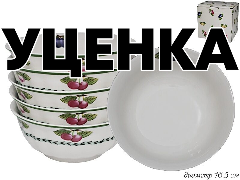 Уценка 1 шт из набор из 6 салатников 16,5см.фрукты в под.уп. фарфор