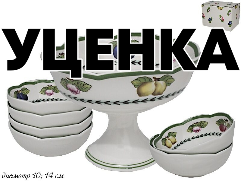 Уценка 1 шт из набор креманка с 6 розеток фрукты в подарочной упаковке фарфор Lenardi