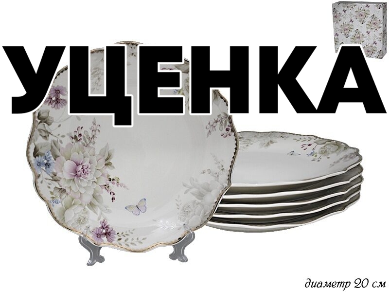Уценка 1 шт из набор из 6 тарелок хризантемы в под.уп. фарфор