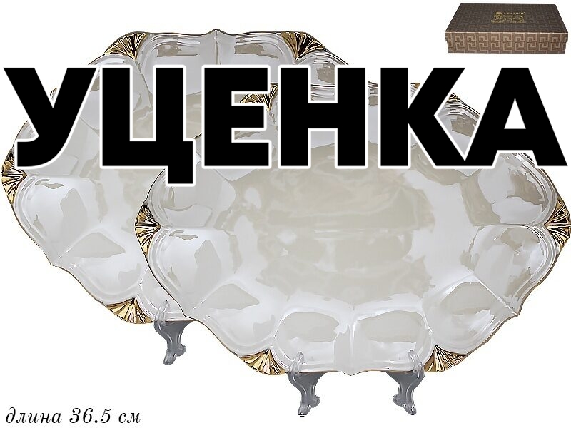 Уценка 1 шт из набор из 2 овальных блюд 37х28см перламутр белый в подарочной упаковке фарфор Lenardi