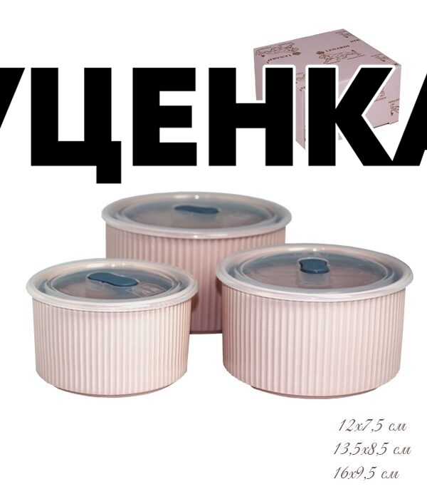 Уценка 1 шт из набор из 3 салатников с крышками в под.уп.
