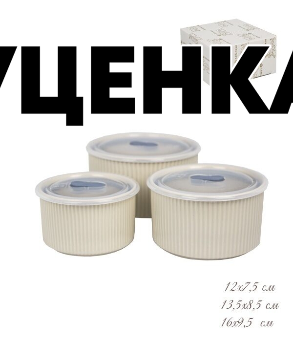 Уценка 1 шт из набор из 3 салатников с крышками в под.уп.