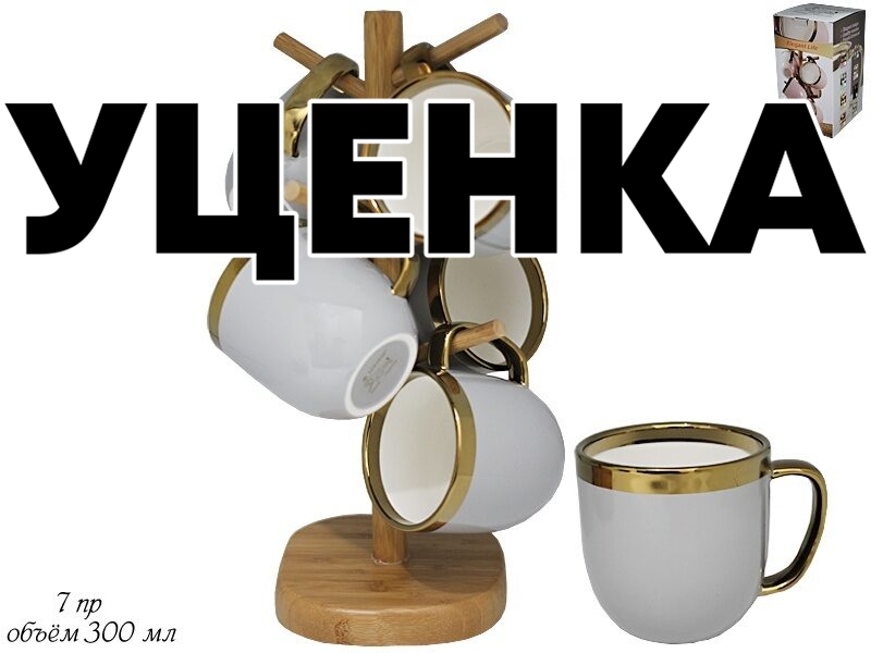 Уценка 1 шт из набор из 6 кружек 300 мл на подставке в подарочной упаковке Lenardi