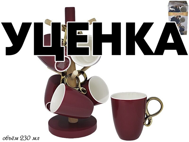 Уценка 1 шт из набор из 6 кружек 230 мл на подставке в под.уп.