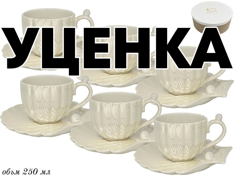 Уценка 1 шт из чайный набор на 6 персон 12 предметов 250 мл в подарочной упаковке фарфор Lenardi