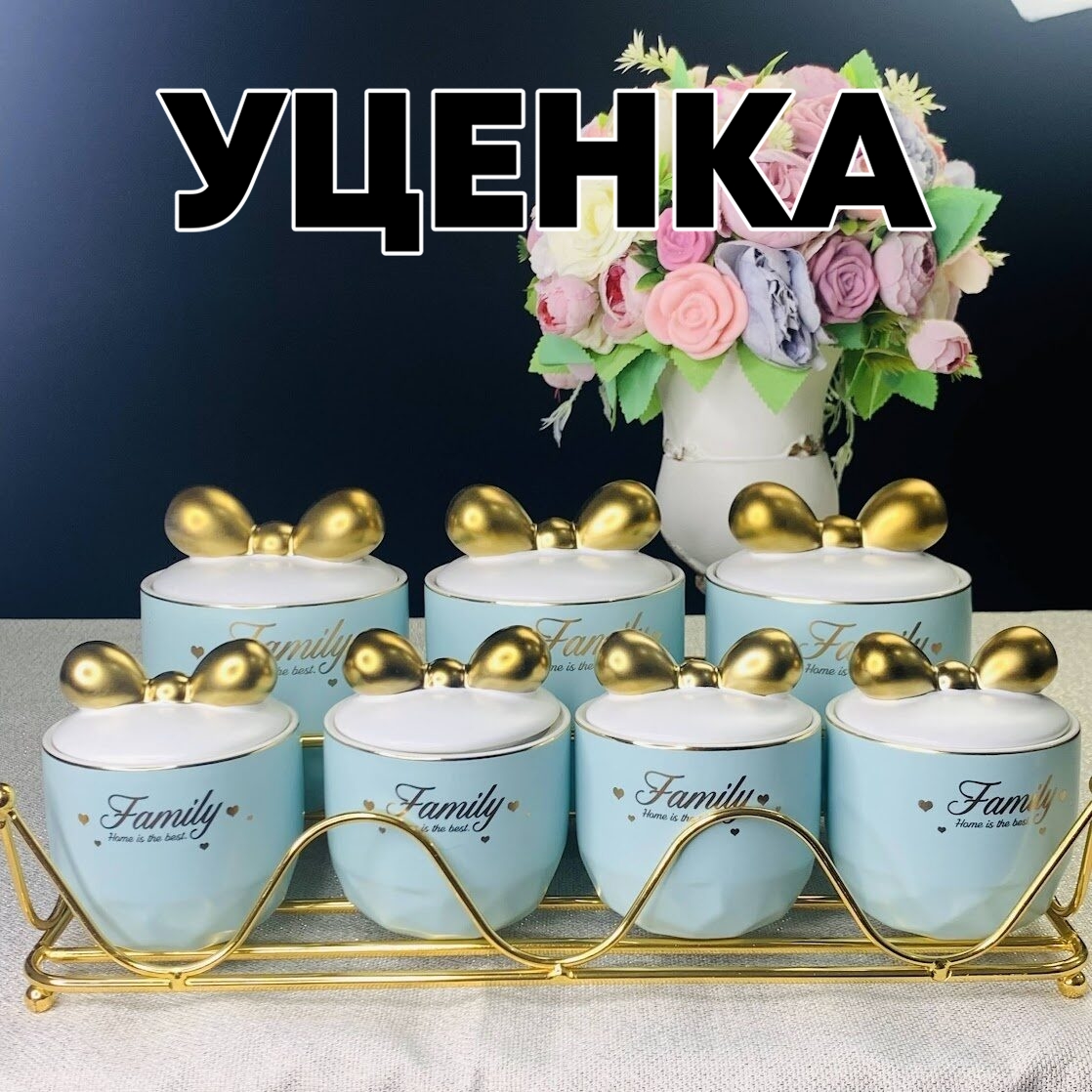 Уценка 1 шт из набор из 7 банок для сыпучих на подставке в подарочной упаковке фарфор Lenardi