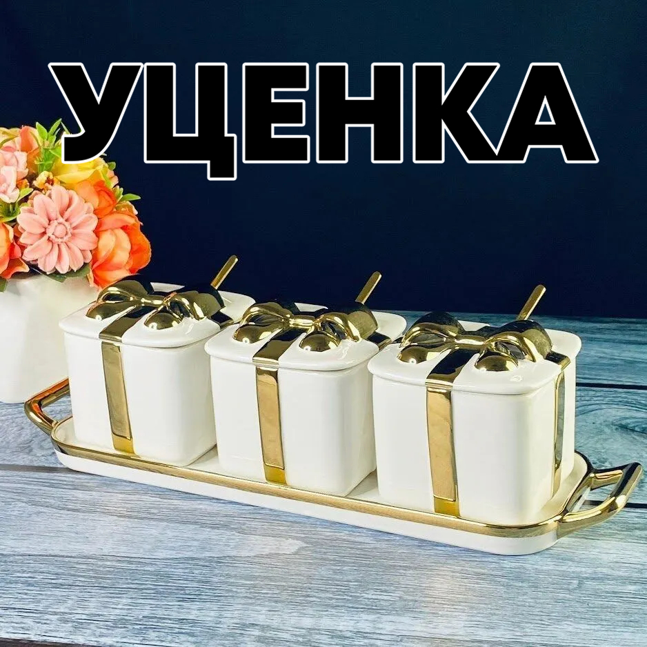 Уценка 1 шт из набор 3 штуки банка для специй с ложкой Lenardi Multicolor 350мл, на подставке, фарфор