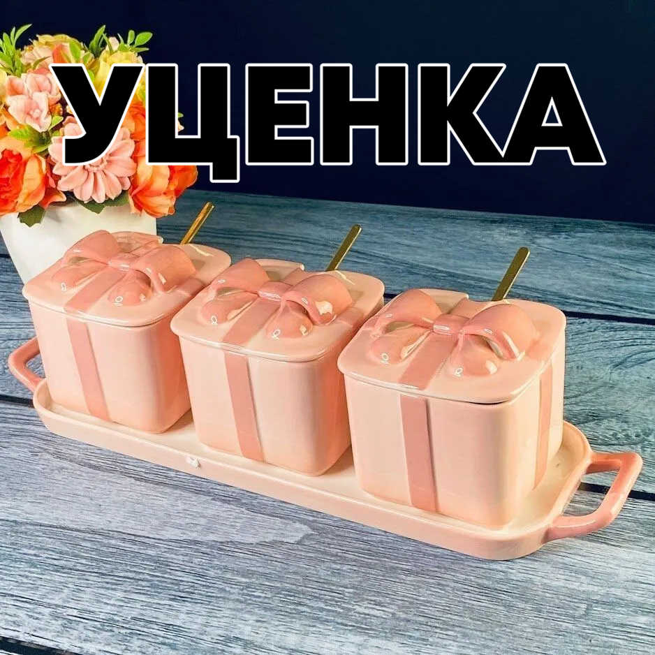 Уценка 1 шт из набор 3 штуки банка для специй с ложкой Lenardi Multicolor 350мл, на подставке, фарфор