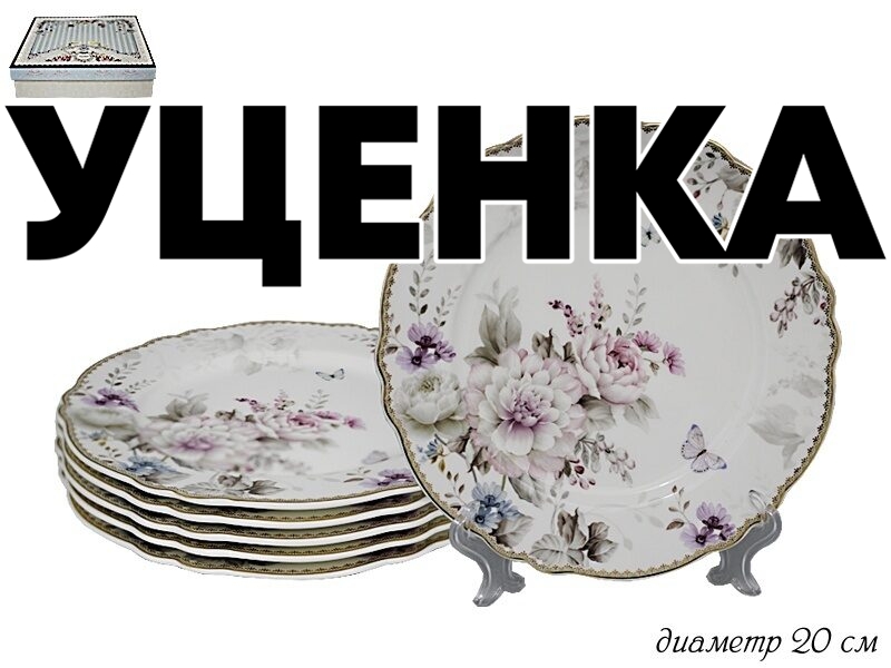 Уценка 1 шт из набор из 6 тарелок 20см. хризантемы в под.уп. фарфор