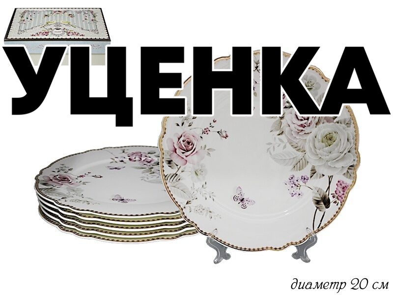 Уценка 1 шт из набор из 6 тарелок 20см.пионы в под.уп. фарфор