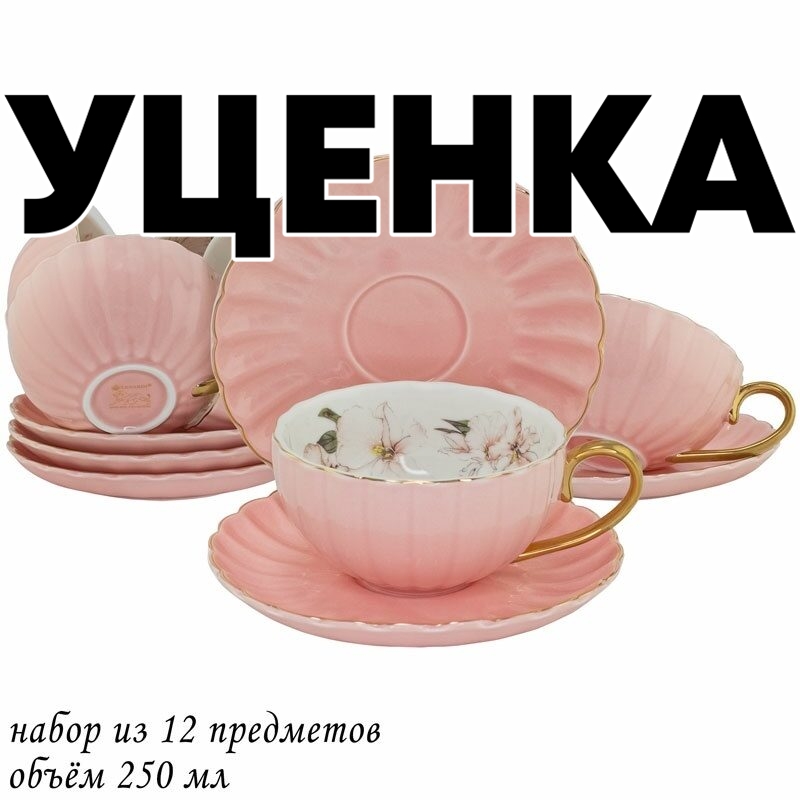 Уценка 1 шт из чайный набор на 6 персон 12 предметов 250 мл в подарочной упаковке фарфор Lenardi