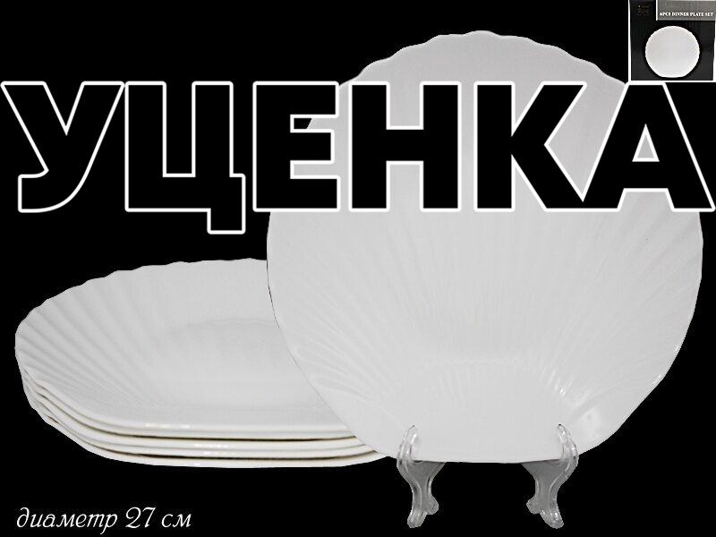 Уценка 1 шт из набор из 6 тарелок 27см. ракушка в подарочной упаковке опаловое стекло Lenardi