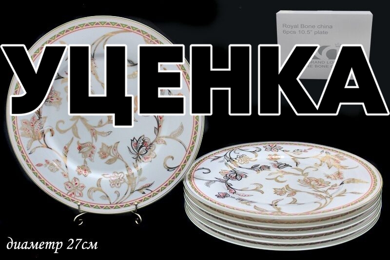 Уценка 1 шт из набор из 6 тарелок 27см. золотой цветок в подарочной упаковке костяной фарфор Lenardi