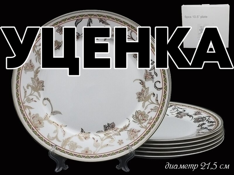 Уценка 1 шт из набор 6 тарелок 21,5 см золотой цветок в подарочной упаковке ак костяной фарфор Lenardi