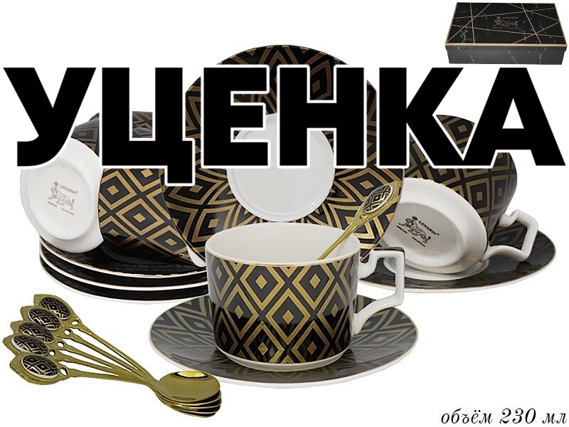 Уценка 1 шт из Чайный набор на 6 персон 12 предметов 250 мл ГЛОРИЯв подарочной упаковке Фарфор Lenardi Разделочная доска Neoflam Flutto Marble 36*25 см