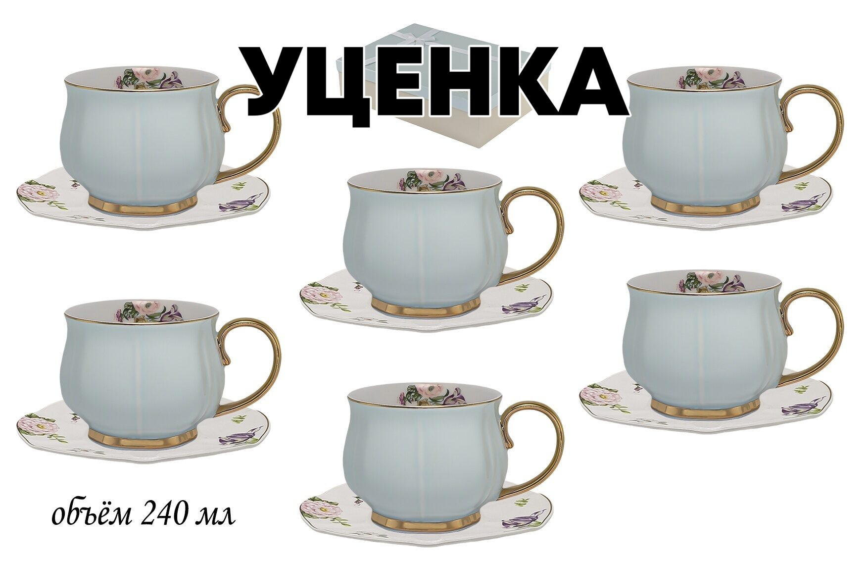 Уценка 1 шт из чайный набор на 6 персон 12 предметов 240 мл в подарочной упаковке Lenardi