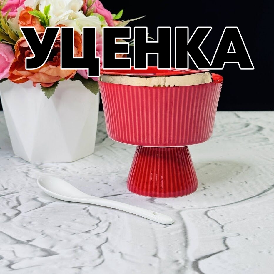 Уценка 1 шт из набор 6 креманок 250 мл и 6 ложек эллада в подарочной упаковке фарфор Lenardi