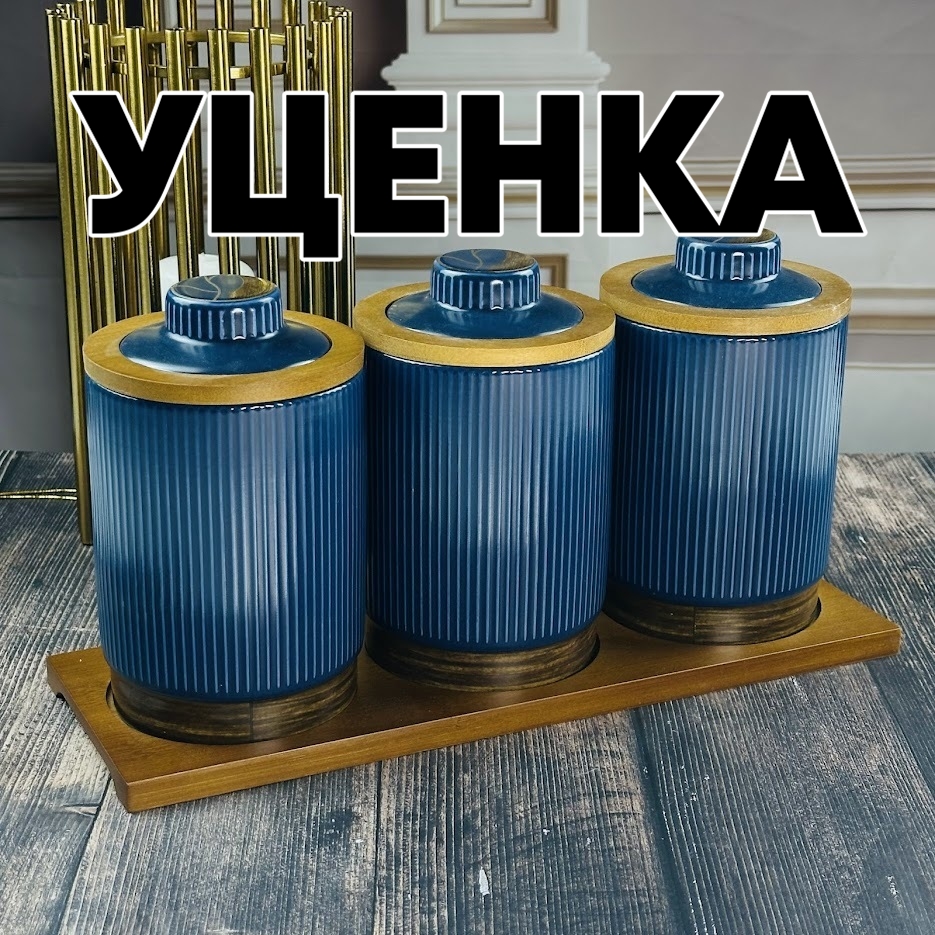 Уценка 1 шт из набор из 3 банок для сыпучих продуктов 900 мл на подставке Wood в под.уп. фарфор