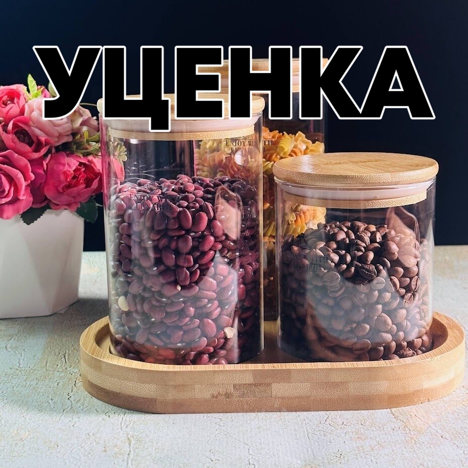 Уценка 1 шт из набор из 3 банок для сыпучих продуктов 700/900/1050мл. на подставке в подарочной упаковке стекло Lenardi