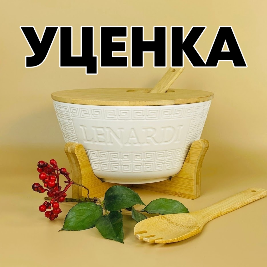 Уценка 1 шт из набор салатник 25см. с 2 ложками на подставке Bamboo в под.уп. фарфор