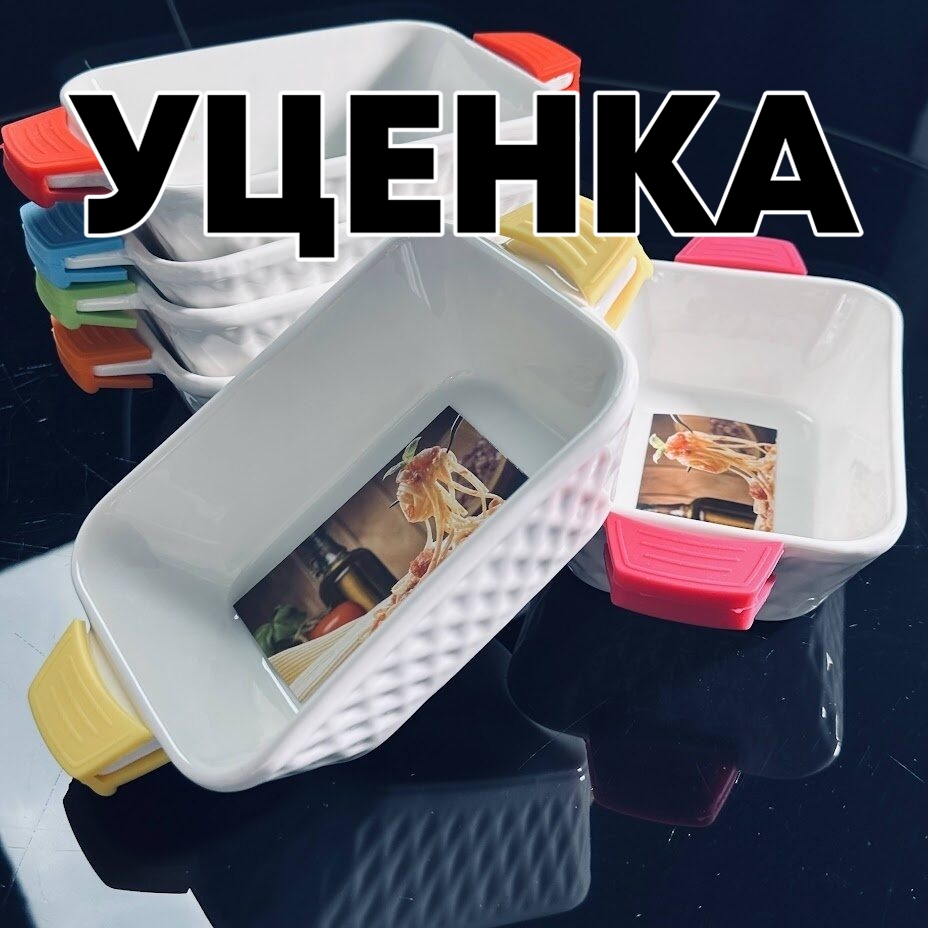 Уценка 1 шт из набор из 6 прямоугольных салатников 19,5см с силикон.ручками в под.уп. фарфор