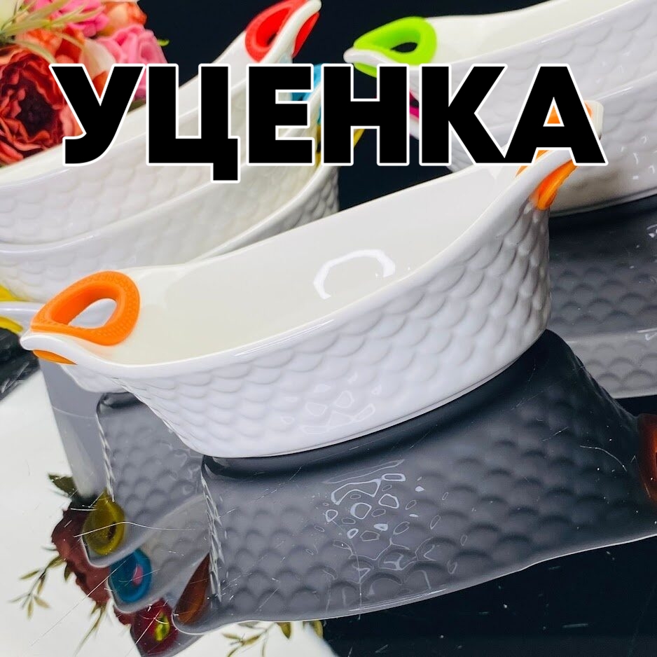 Уценка 1 шт из набор из 6 овальных салатников 17см с силикон.ручками в под.уп. фарфор