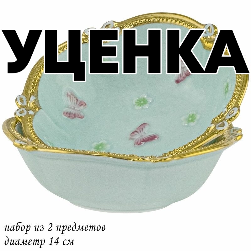 Уценка 1 шт из набор из 2 салатников 14смбабочки ментол в подарочной упаковке фарфор Lenardi