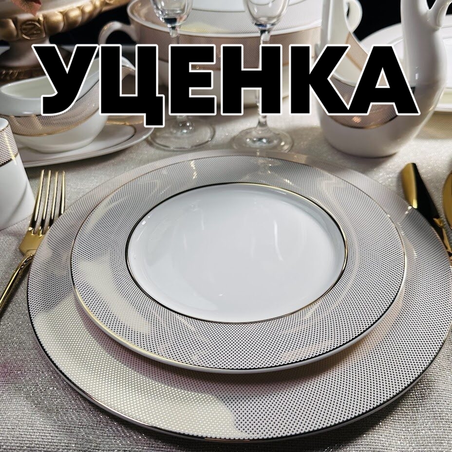 Уценка 1 шт из набор из 6 тарелок 22см золотая симфония в подарочной упаковке костяной фарфор Lenardi