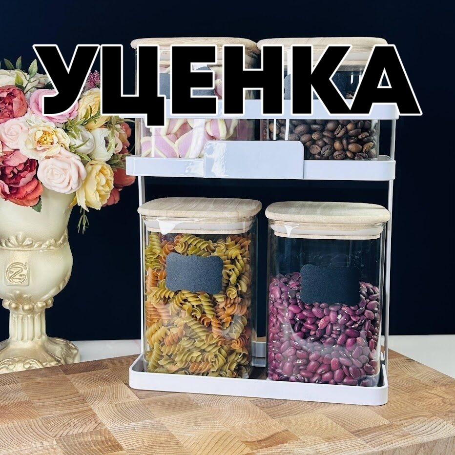 Уценка 1 шт из набор из 4 банок для сыпучих продуктов на метал.подставке в подарочной упаковке Lenardi
