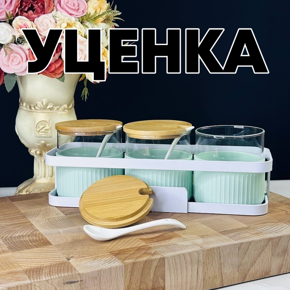 Уценка 1 шт из набор для специй 3пр. с ложками на метал.подставке в подарочной упаковке Lenardi