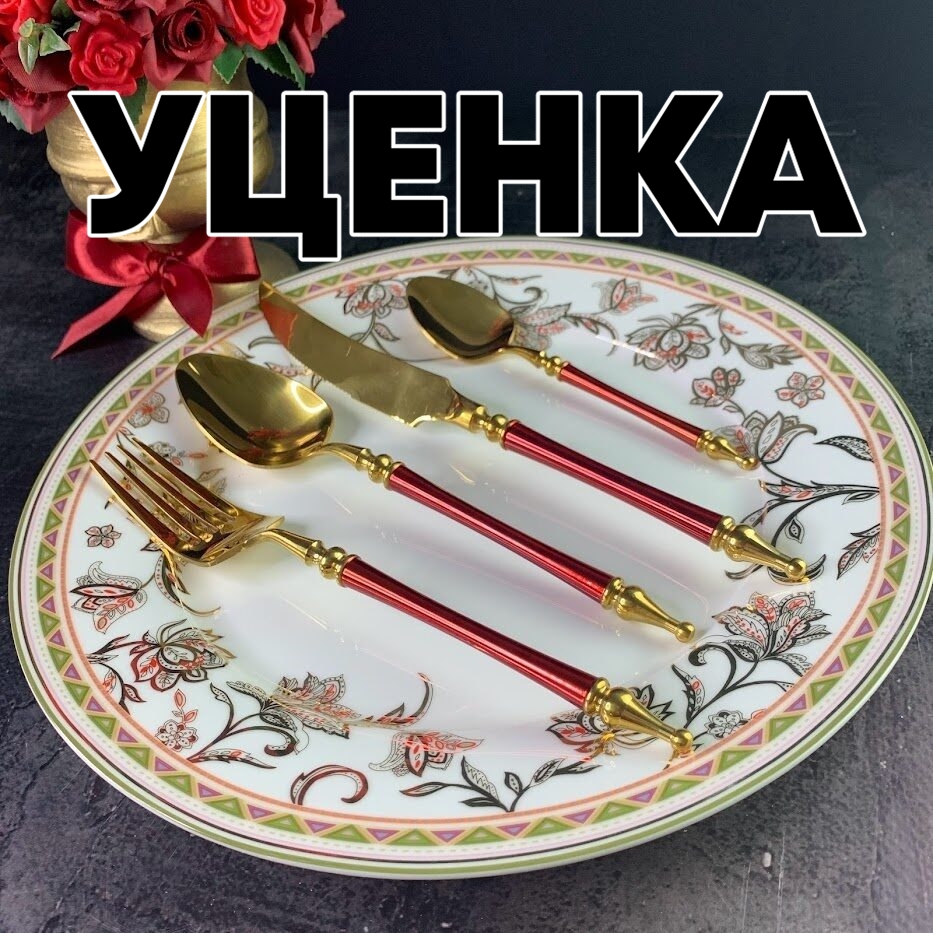Уценка 1 шт из набор столовых приборов 24пр. красный в подарочной упаковке Lenardi