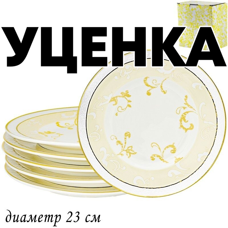 Уценка 1 шт из набор из 6 тарелок 23см. Damask в подарочной упаковке фарфор Lenardi