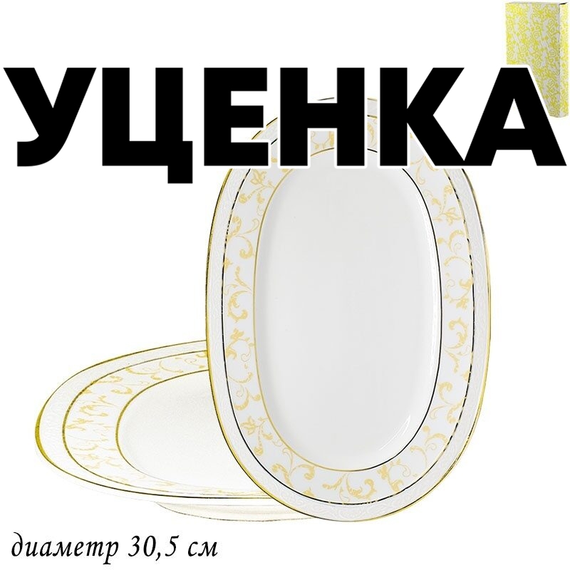 Уценка 1 шт из набор из 2 овальных блюд 30,5см. Damask в подарочной упаковке фарфор Lenardi
