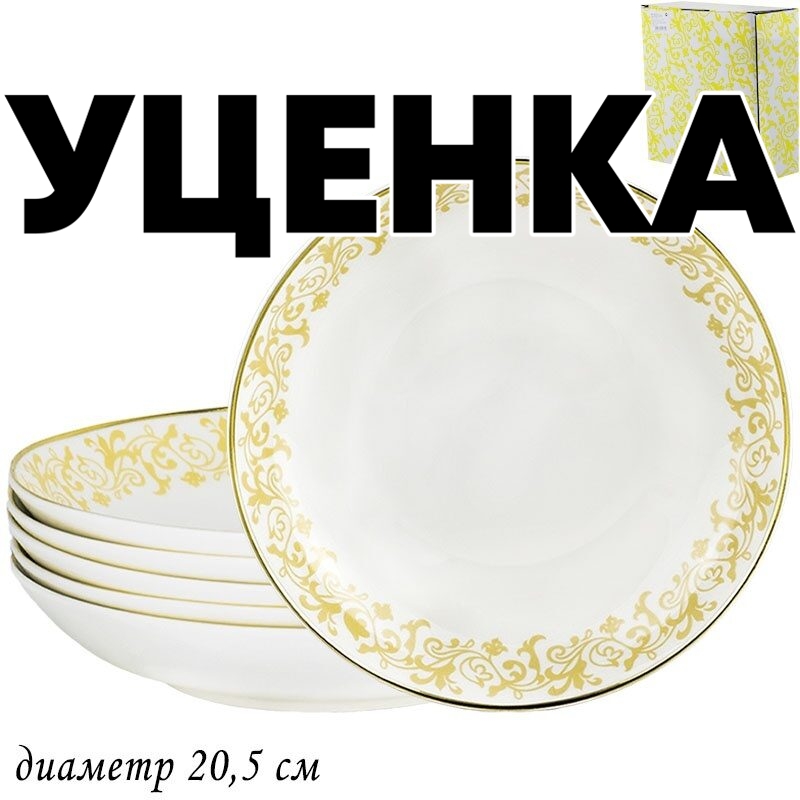 Уценка 1 шт из набор из 6 глубоких тарелок 20,5см. Damask в подарочной упаковке фарфор Lenardi