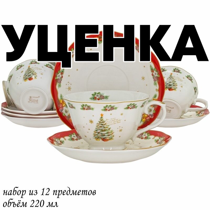 Уценка 1 шт из чайный набор 12пр. 220 мл новый год в под.уп. фарфор