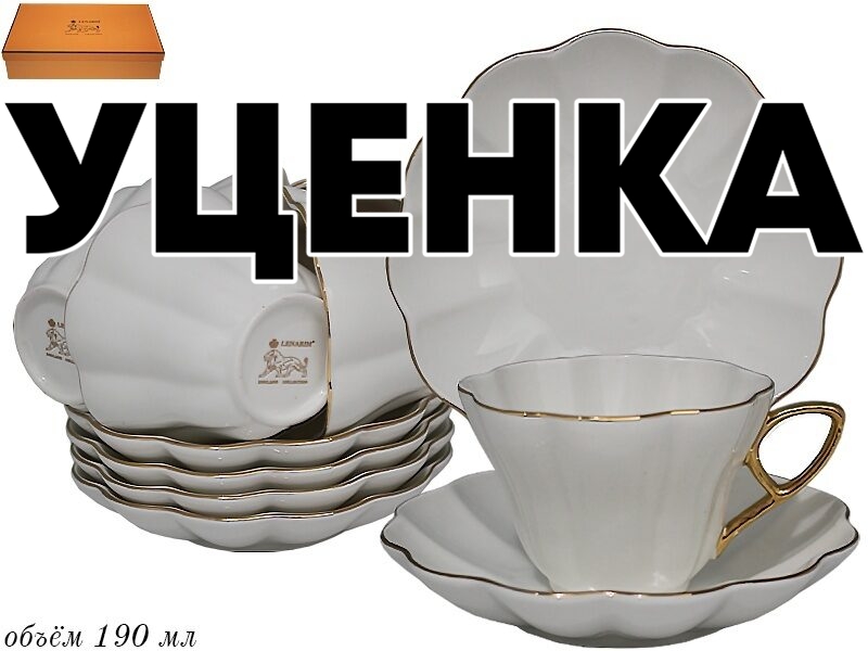Уценка 1 шт из чайный набор на 6 персон 12 предметов 190 мл в подарочной упаковке фарфор Lenardi