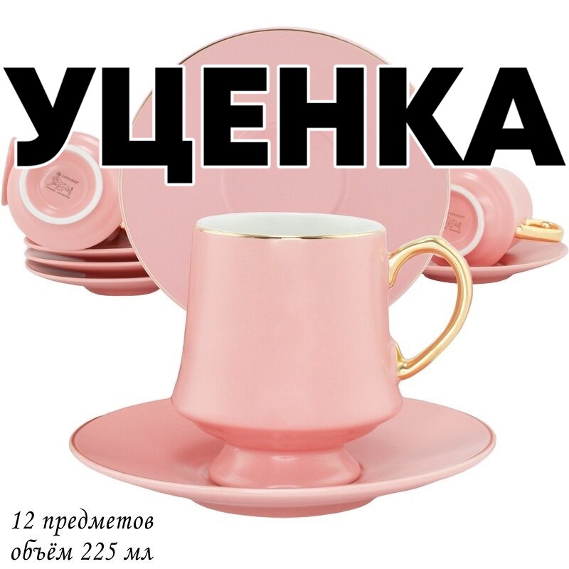 Уценка 1 шт из чайный набор на 6 персон 12 предметов 225 мл в подарочной упаковке фарфор Lenardi