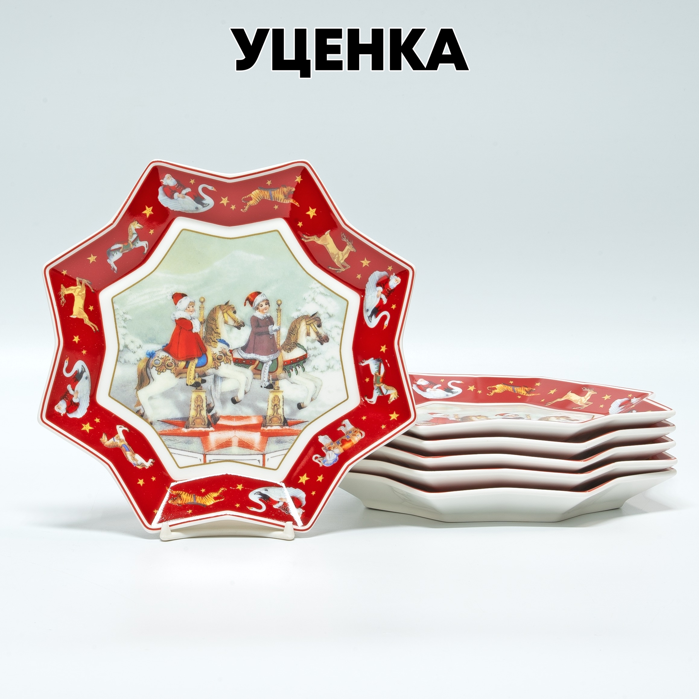 Уценка 1 шт из набор из 6 тарелок 15 см новый год фарфор