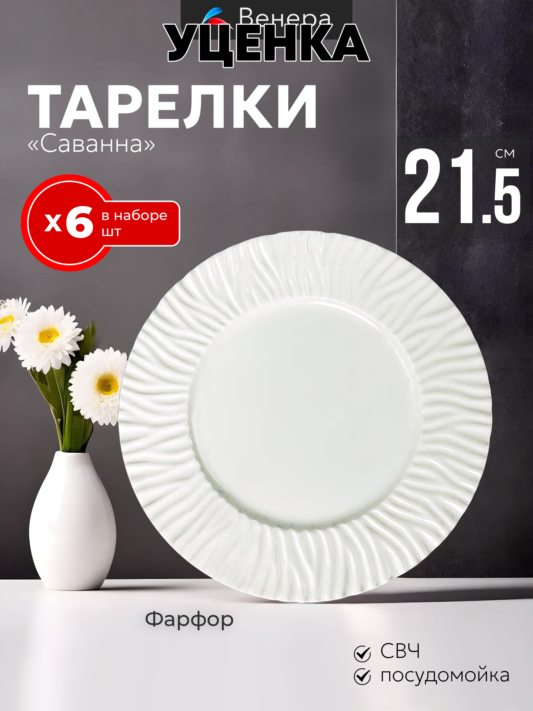 Уценка 1 шт из набор из 6 тарелок 21,5х2см саванна в под.уп.(х6) фарфор