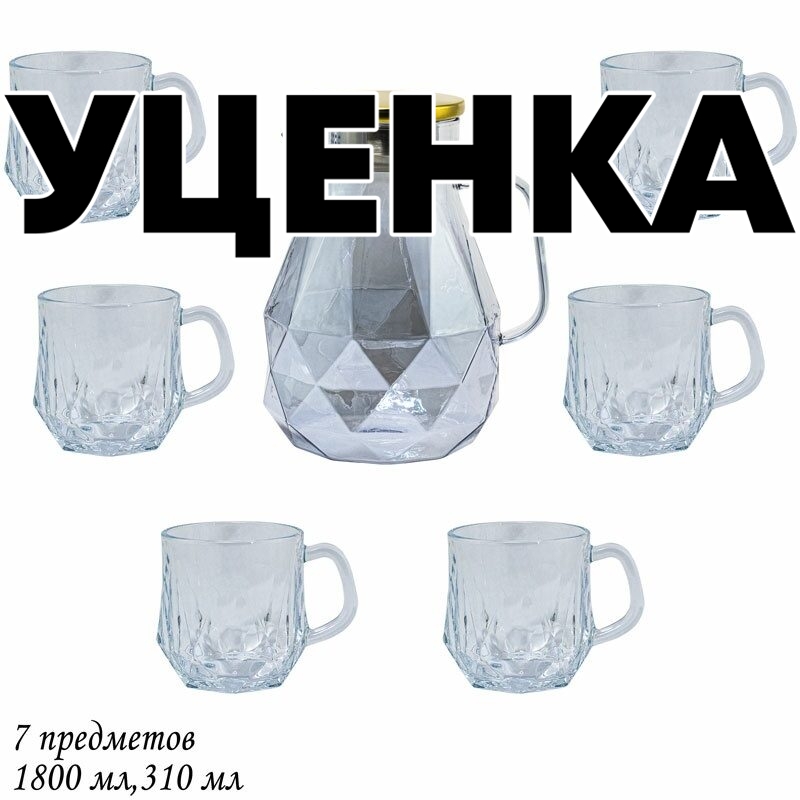 Уценка 1 шт из набор: кувшин-заварник 1,9 л и 6 кружек 350 мл голубой, в подарочной упаковке Lenardi