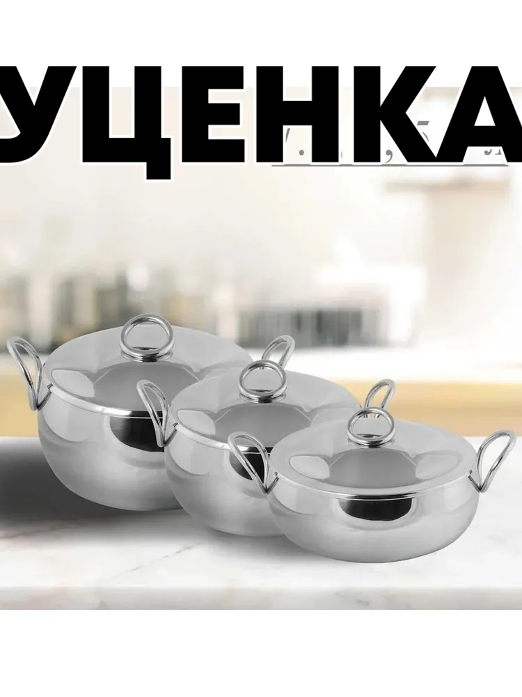 Уценка 1 шт из набор посуды 6 предметов Lenardi Mirrow кастрюли 5.3л, 7,2л, 6л, нержавеющая сталь